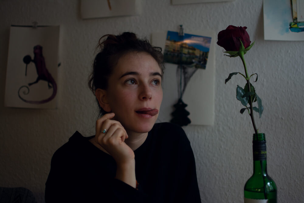 Ich lebe in einer klitze­kleinen Wohnung mitten in Köln und zeichne dort meistens den ganzen Tag. Dabei entstehen sowohl Monsterchen und Fabeltiere für Kinderbücher, aber auch rätselhafte Geschichten für Erwachsene über das Zwischen­menschliche.